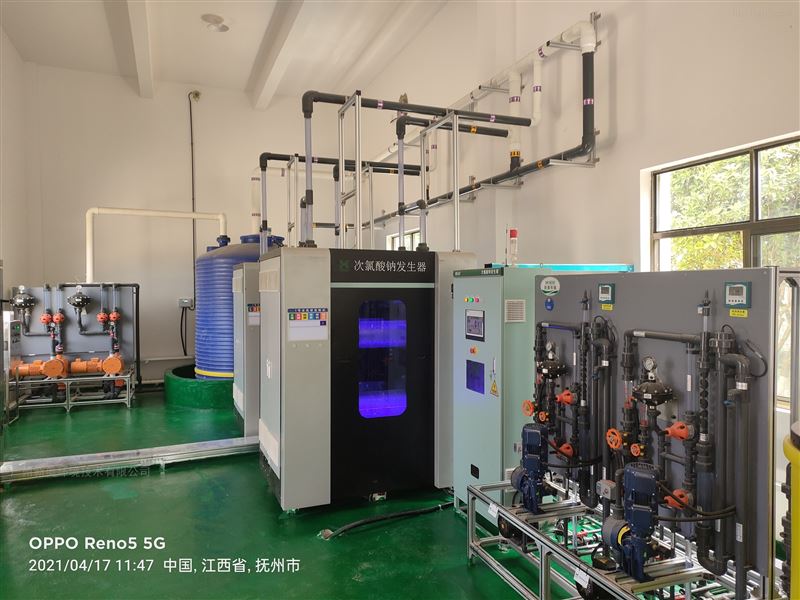 次氯酸钠由电解食盐法制备。我司的次氯酸钠发生器由若干个系统组成,包括软水制备、溶盐系统、盐水精制系统、稀盐水配置系统、次氯酸钠发生、次氯酸钠贮存系统、排氢系统、酸洗系统、次氯酸钠投加及配电控制系统。