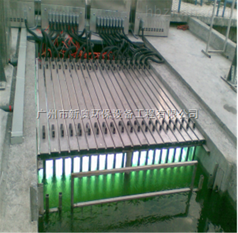 广州框架式紫外线消毒器系统由六个部分组成:明渠紫外消毒模块、空压机与气动装置、安装与遮光附件、镇流器电箱、中央控制柜、水位控制装置。