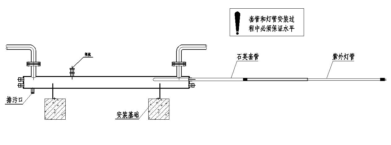 注:以上为地面式安装方式(一般为较大型紫外线消毒器);非地面型安装方式安装时一般应设支架以确保消毒器稳固(一般为较小型紫外线消毒器)。