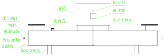 本设备由紫外灯、石英管、电控系统、封件、筒体(罐体)、进水出水口等部分组成。